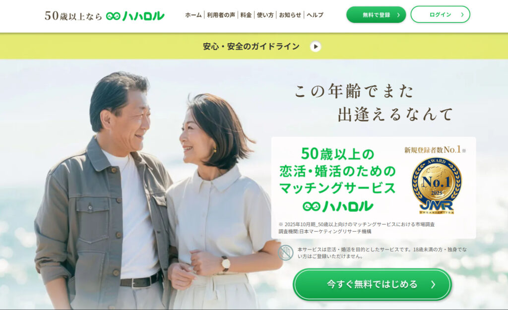 『ハハロル』は、50代以上の方々が同年代の恋人・友人と出会うことに特化したマッチングサービスです。【PR】